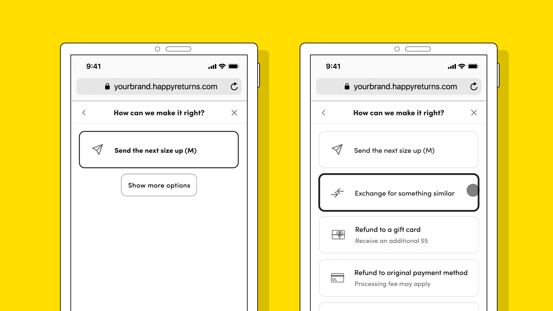 Who doesn't love a little cash bonus? With Happy Returns, shoppers have the option to receive site credit as a bonus incentive instead of a refund. This can encourage them to shop with you again in the future – while helping to keep more revenue today.